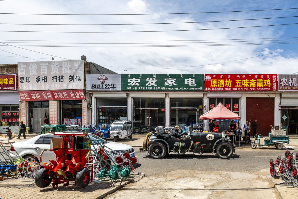 Over the next 14 days we wound and at times battled our way across China. We passed the tut-tut repair workshops of tiny rural villages. The strange juxtaposition of cows tied up outside the front door on streets with ‘state of the art’ camera gantries… Then a 1930s Bentley rumbles past. Villages had probably never seen these in books let alone in real life!