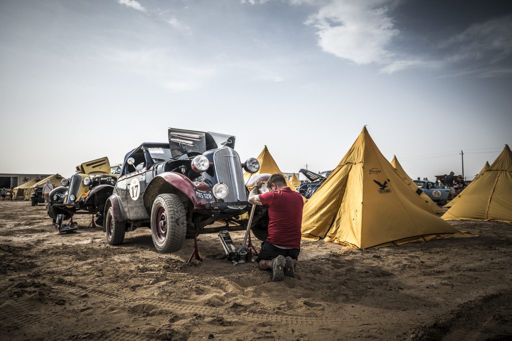 Be it hot hotel car parks or sand storms in desert campsites, the work to keep these old cars going still had to be done. The milage and conditions were relentless, the next day the rally moves on, so you have to be ready because it won’t wait.
