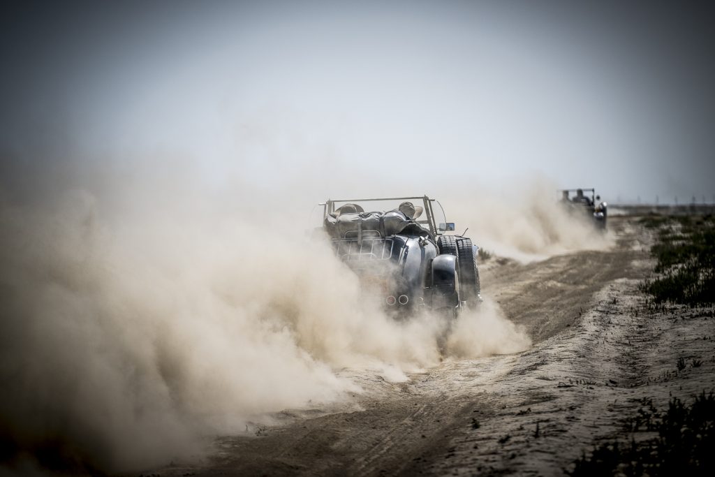 China gave us everything… From snow at 3429m to 200ft below sea level driving along the old seabed in The Great Sea Road National Park. After 14 days we waved goodbye to China, the roads and tracks became those of Kazakhstan oil fields. Dusty rutted tracks lead onwards to the Caspian Sea. As crews flew over, I joined the Sweeps on the boat to Azerbaijan. Ahead lay 2 days much needed non-driving in Baku.
