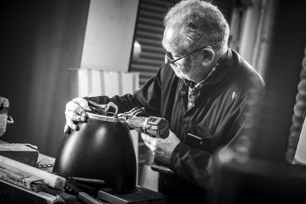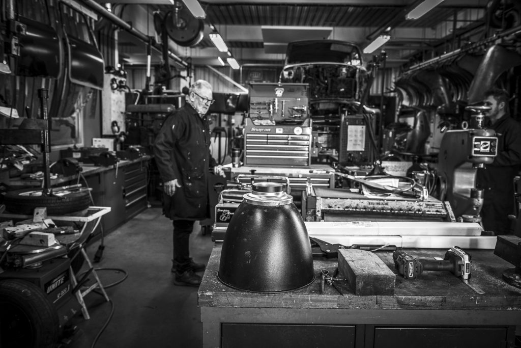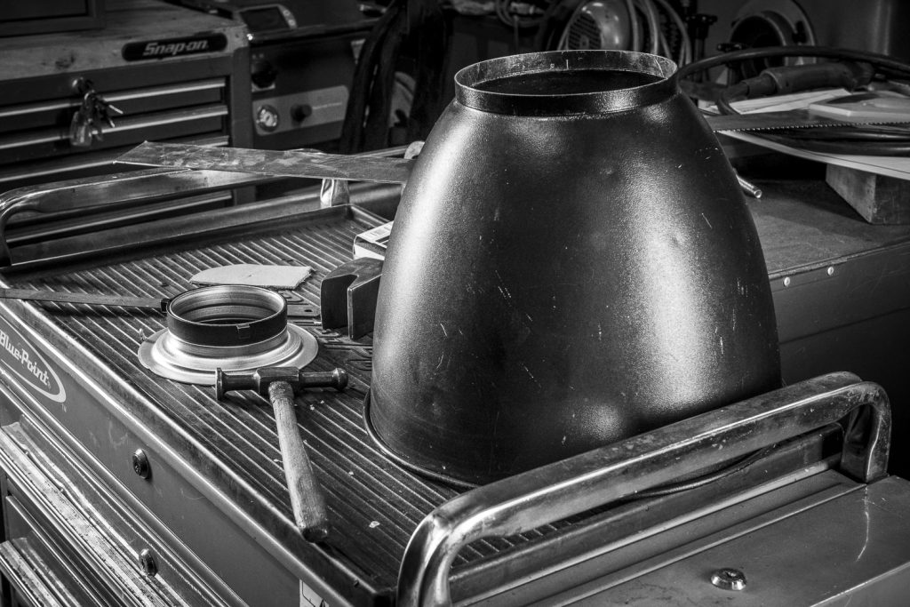 I carried on with my student shoot, all the while keeping half an eye on Mark and what he was doing with the reflector. He checked, measure, trimmed, filed and adjusted. Before finally drilling and riveting the new collar onto the old 60s reflector. It looked as if it had just arrived from the factory and always been that way… It was perfect!!