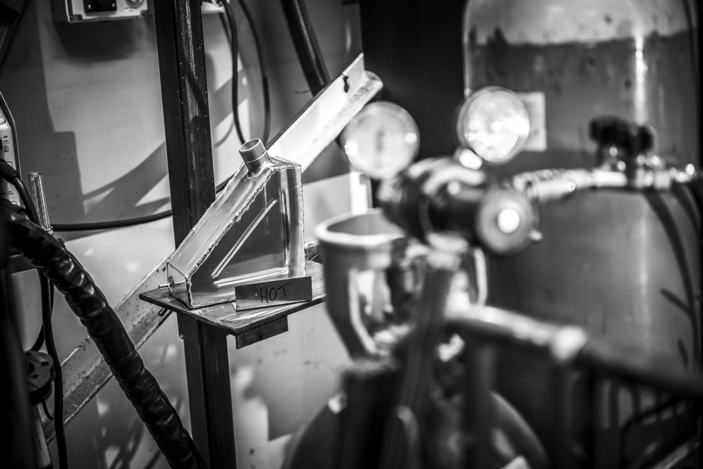 A student’s fabricated fuel tank cools down safely after final welding